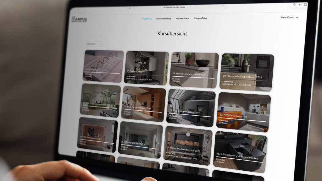Ons CampusTeam is optimaal voorbereid op jouw leerbehoeften. Vrolijk, humoristisch en professioneel worden de bijzonderheden van Häcker keukens in de trainingen overgebracht. Wij trainen carrièrestarters, ervaren keukenadviseurs en monteurs.